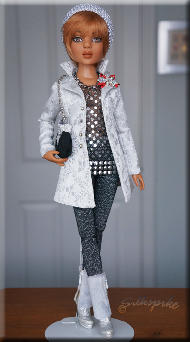 Coats are such a challenge to make since there are lots of pieces, and they are fully lined, but once you get the hang of making them, you'll want to make one for all of your dolls. This is the Urban Vita coat pattern by Horseman. Follow my FREEBIES link to go to their website. I have made this coat about 6 times, and have made adjustments to fit Antoinette, and now Ellowyne/Lizette. The little buttons on the silver coat are Crystaletts. (just Google them or buy from Horseman) I made everything in the photos below except the boots.